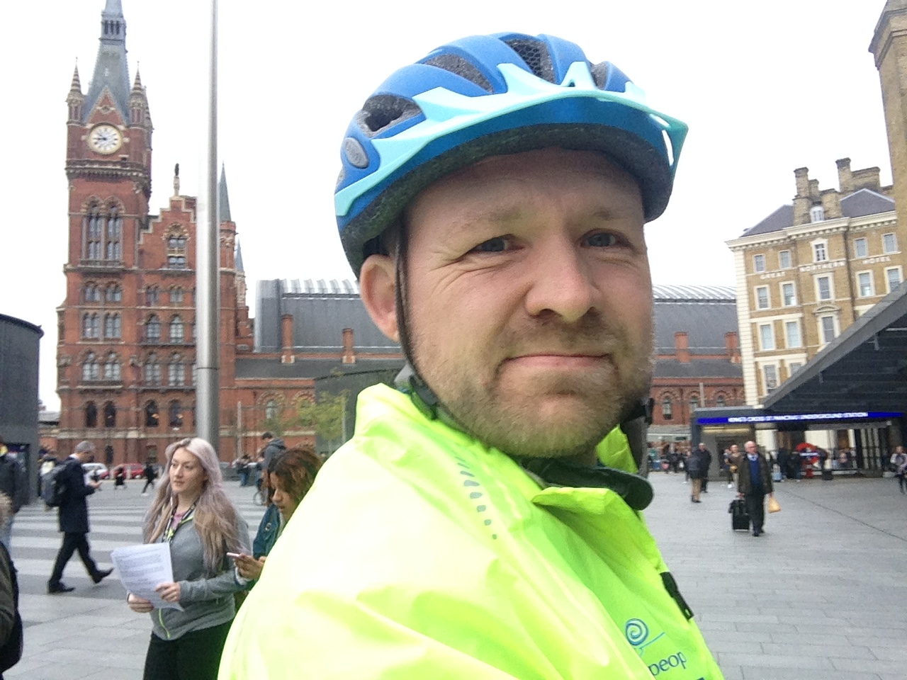 It was an early start on a chilly November day but first leg was fine. Cycling to York station is easy and the staff were fantastic at getting me and my bike on to the train. Their curiosity at someone using the main line with disability assistance to help with a bike was only mildly disconcerting. The staff at London were equally helpful, though there was a certain irony at being wheelchaired the length of the platform to collect my bike. But before I knew it, I was outside Kings Cross waiting for my Wheels for Wellbeing support rider, Alex.