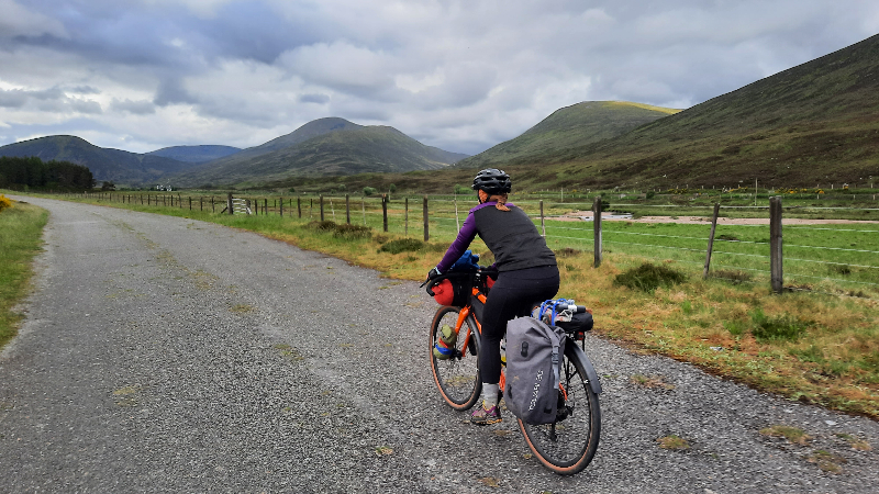 We set out for our day cycling through the Cairngorms with only a loose plan in mind. The Scottish wild camping laws meant that we could pitch our tent at any suitable spot, so our plan was to find somewhere around 60 miles from where we set off that morning. Rain was forecast but we ended up being very lucky, with a heavily-overcast day that meant we didn’t need to worry about heat or sunburn, but also no rain until the last 10 miles. The cycle route was impressively well-signposted and bike-friendly; while it follows some of the major roads through the Cairngorms and towards Glasgow, for the most part the cycling was quiet, car-free, and wonderfully peaceful. And of course, the views were some of the best you could ask for.