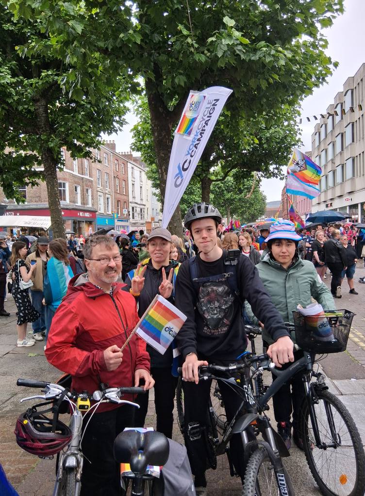 On 7 June, YCC joined the massive, colourful Pride parade from the city centre to the Knavesmire to demonstrate our commitment to inclusivity in our membership and our campaigning. And we were delighted to be far from the only cyclists in the parade.