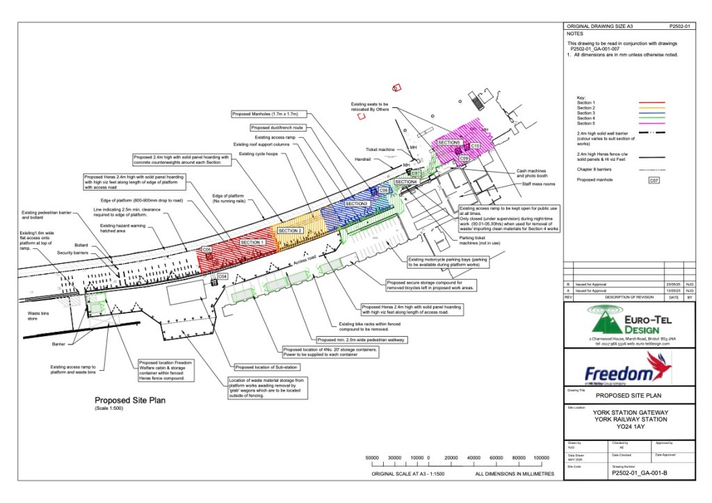 Several members have contacted us about the plans to remove 50 station cycle stands on 16 June. Cllr Kate Ravilious (Executive Member for Transport) told us that this is necessary for a substation to be relocated and LNER has estimated that works will finish by late September. The colour-hatched sections on the plan above will be closed in sequence (so two areas will always remain open) and the racks marked as dashes at the far left of the plan will always remain in use. This means around a quarter of the racks will be out of action at any one time. Cllr Ravilious has stressed to LNER that continued access to these racks is essential because they are the only ones able to accommodate cargo cycles, and not everyone can use the two-tier racks in the short stay car park. Unfortunately crowding seems inevitable but hopefully there will still be space for everyone. Let us know if you have problems.