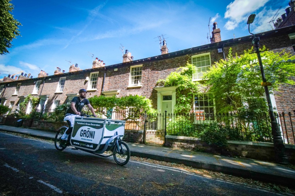 ‘We operate using a hybrid system where we bring our cargo bike on top of the van and leave the van parked outside of York, and cycle the rest. This way another diesel van is prevented from entering the city, and green transport is used instead.’