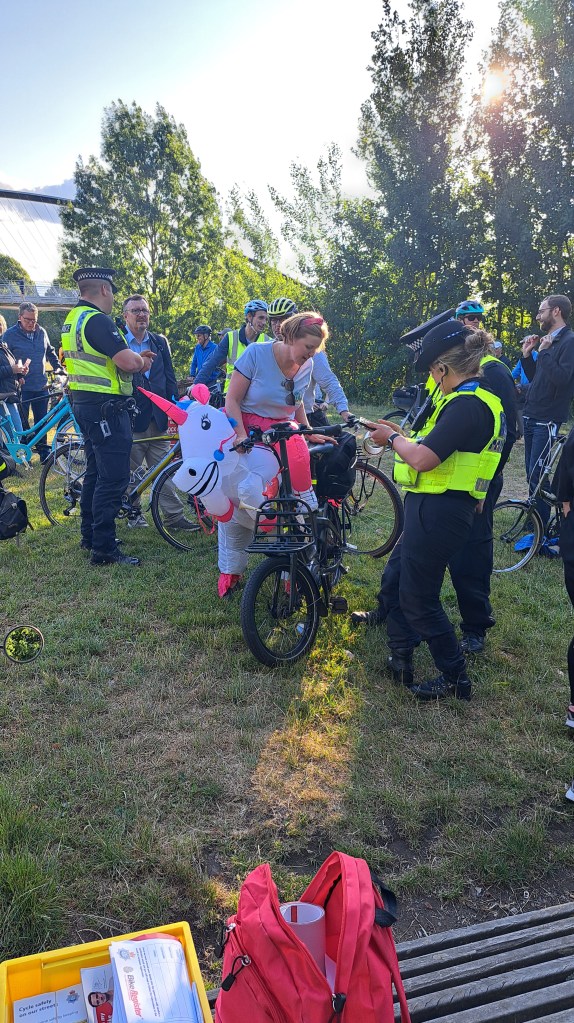 Six North Yorkshire Police attended the anniversary ride “after party” to mark and register bikes. Their presence was very welcome, and shows their commitment to tackling cycle theft. We are starting to recover bikes to owners using BikeRegister, so please get your bike registered to increase the chance of finding it, if it is stolen. There are 100s of bikes stored by the police but they have no way of reuniting them with owners because none is in the BikeRegister national database. If you contact them with the make, model, colour, and any specific distinguishing features they might be able to find your stolen bike in storage. This is why we recommend the registration of all your bikes on BikeRegister, and the inclusion of a photo.