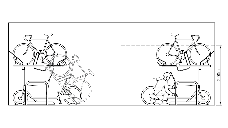 The proposals for the communal apartment cycle stores for Plots K & L are of particular concern as they appear to show the accessible stands placed below cycle racks. Whilst there is no official guidance to the required head height above accessible stands in LTN 1/20 or other complimentary documents, a head height of 2.0m is generally cited as the minimum head height for other purposes in documents such as Approved Documents K & M, and BS 8300. The upper tier of two tier stands are significantly lower than 2.0m which will prevent ease of access to accessible stands below especially for those with limited physical abilities for which the stands are intended for. It is also highly likely that any cycles parked in the stands at ground level will prevent the top tier racks from being accessed.
