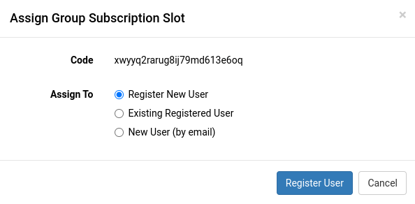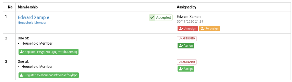 To add new members click Assign. If they’re not already registered, and you have their permission, you can use Register New User to enter their details yourself. Otherwise use New User (by email) to send them an invite to sign up and accept your invitation themselves.