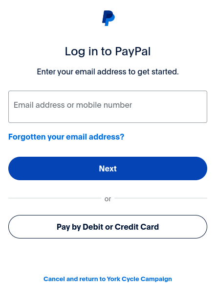 You can still make a payment without a PayPal account by selecting ‘Pay by Debit Card’ instead on the PayPal log in page rather than logging in.
